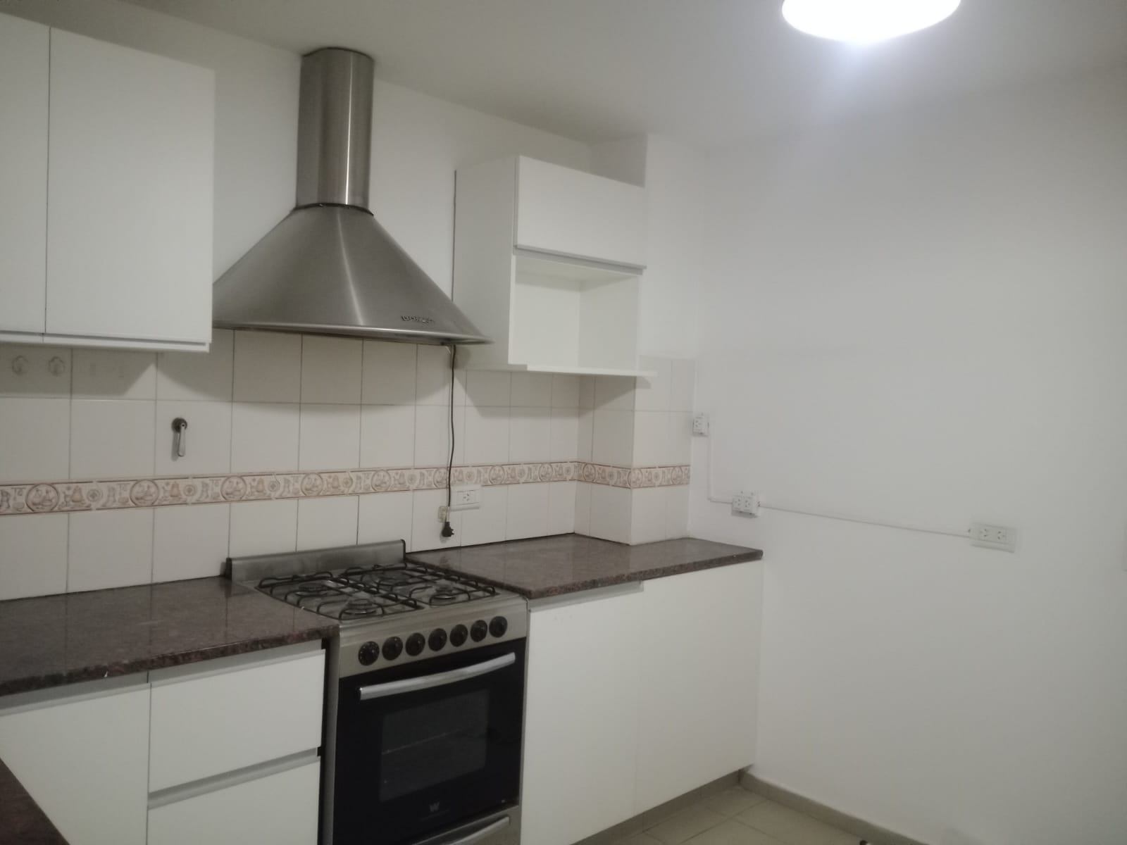 La cocina es amplia y funcional, con suficiente espacio para un antecomedor y conexión para lavarropas, además de contar con acceso a un patio frontal más pequeño. La división entre la cocina y el comedor se realiza a través de un práctico toilette. Dos dormitorios con placares amplios brindan el espacio necesario para el almacenamiento, y un baño completo, que incluye vanitory, espejo y bañera, complementa la distribución. Este departamento también ofrece una cochera cubierta, asegurando comodidad y seguridad para su vehículo.